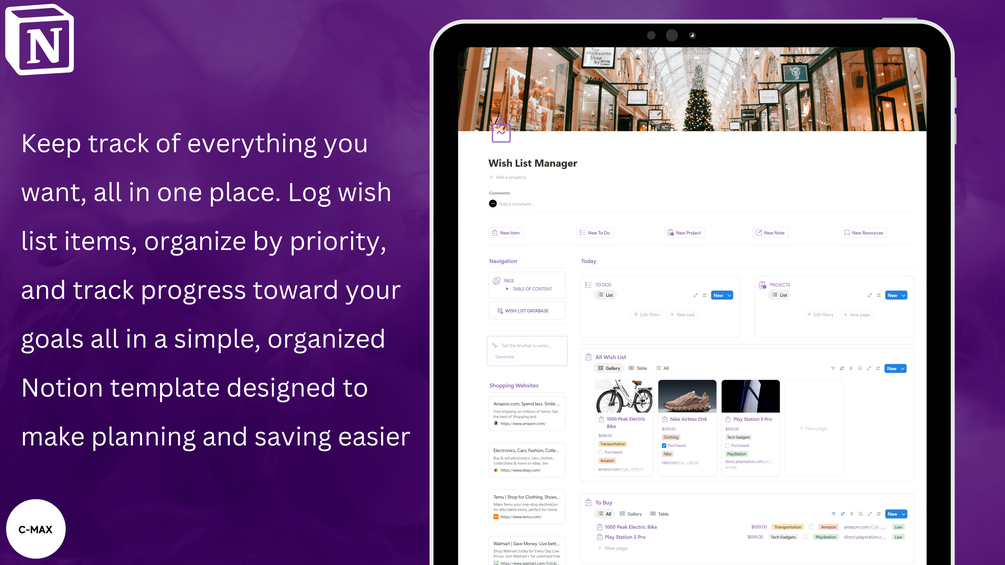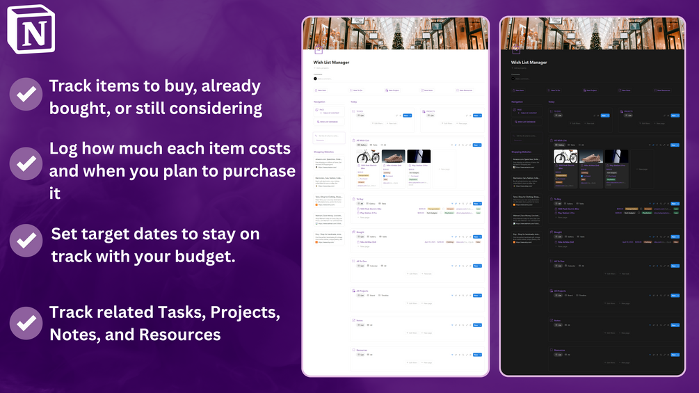 Take control of your spending and stay organized with this free Wish List Manager built in Notion!
